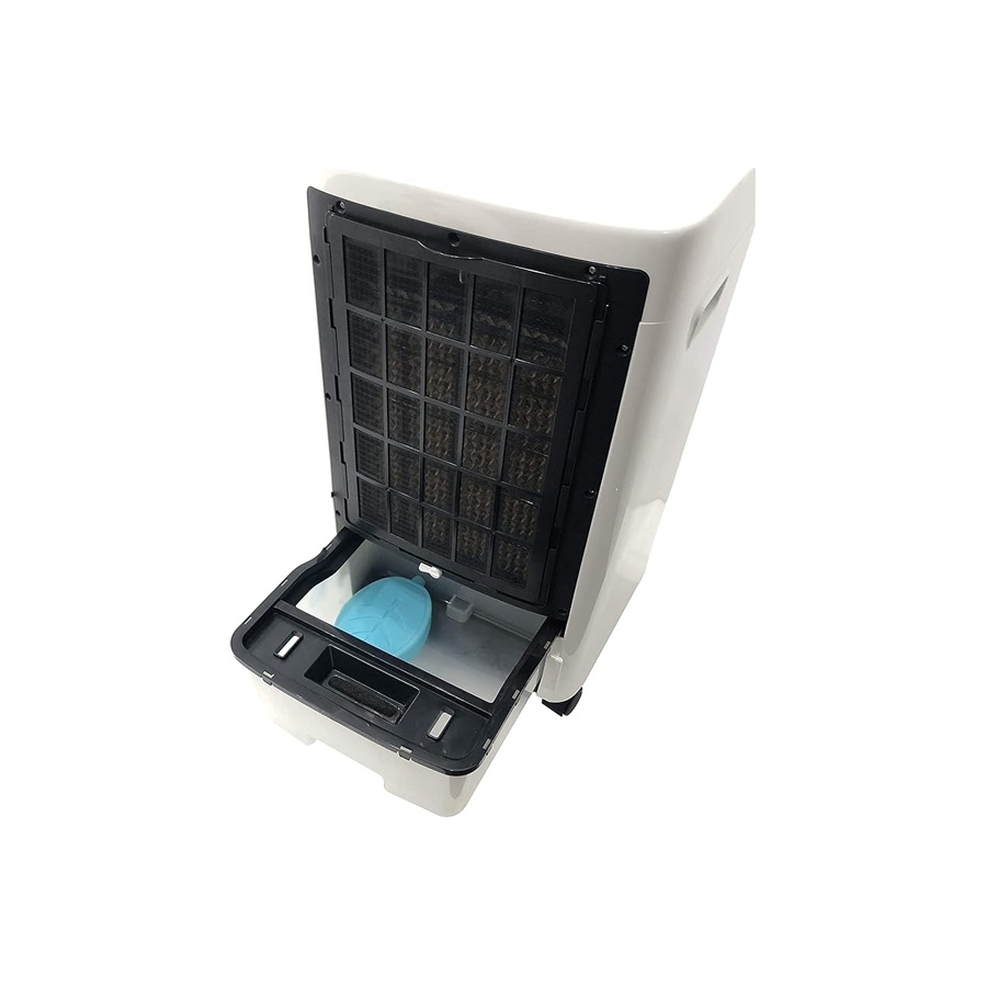 Ovaj uređaj koristi evaporativnu tehnologiju, tj. hlađenje zraka kroz isparavanje vode. To znači da ne hladi zrak kao klasična klima (sa rashladnim plinom), već stvaranjem hlađenja zrakom bogatim vlagom i strujanjem zraka preko vlažnih površina – što može biti posebno ugodno u sušim ili toplim prostorima.