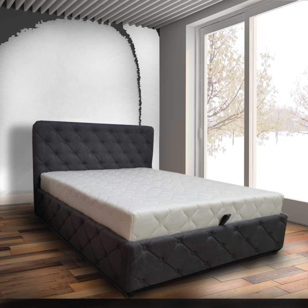 Francuski ležaj OLA2 – 160×200 – Materijal:Platno, Konstrukcija:drvo-spužva, Boje:siva/bijela, Dimenzije: 160X200, Madrac:žičano jezgro