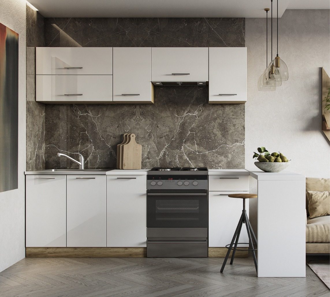 Otkrijte kuhinju Gracija – Blok kuhinja – Dimenzija 2,2 metra, savršen spoj profinjenosti i praktičnosti za vaš dom! Dizajnirana za prilagodbu svakom prostoru, kuhinja Gracija dostupna je već od 29,00 KM mjesečno na 36 mjeseci. Uživajte u eleganciji zlatnog hrasta i bijele boje koje unose toplinu u vašu kuhinju. Katalog