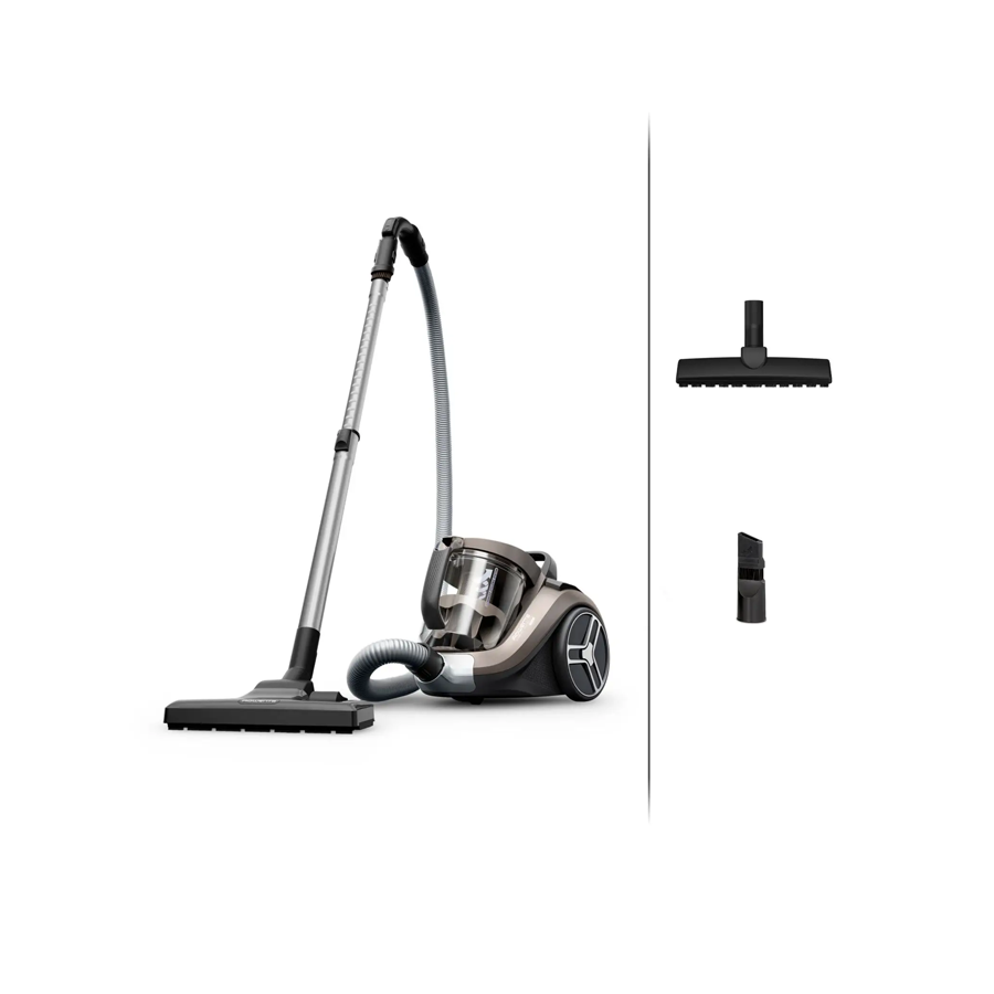 Rowenta RO4B30EA Compact Power XXL je klasični usisivač bez vrećice dizajniran za dubinsko čišćenje velikih površina zahvaljujući snažnoj usisnoj snazi, velikom spremniku za prašinu i naprednom sustavu filtracije. Spoj snažnog motora, kompaktnog dizajna i pametne ergonomije čini ga odličnim izborom za svakodnevno održavanje čistoće u prosječnom i većem domu.