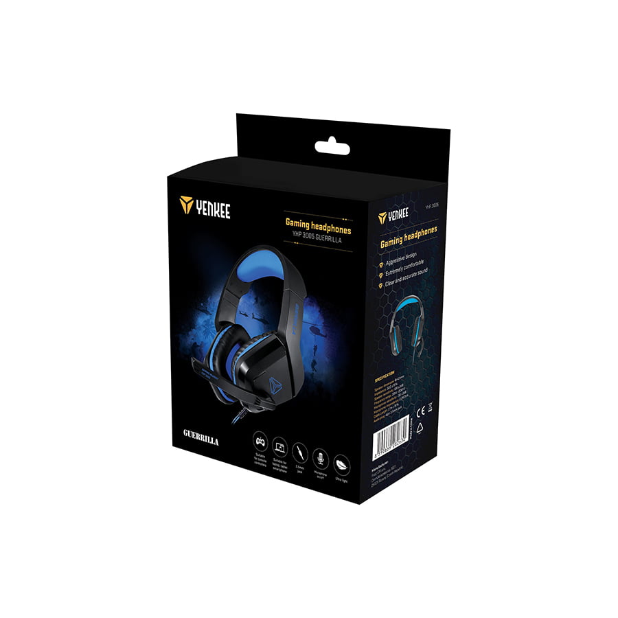 Yenkee YHP 3005 GUERRILLA su žične gaming slušalice s mikrofonom dizajnirane za video igre, razgovore i multimediju, s ergonomskim dizajnom i praktičnim upravljanjem na kablu. Povezuju se putem standardnog 3,5 mm audio konektora, što ih čini kompatibilnim s mnogim uređajima poput računara, laptopa, konzola i mobilnih telefona.
